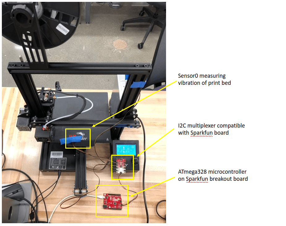 Repeatable and distinguishable patterns in data are important to identify when feeding into a machine learning network. Since a dataset of vibration behavior from a 3D pritner was not readily available, a dataset had to be created. The design of this experiment called for repeatably running the same motion on the 3D printer while logging vibratory information from a network of accelerometers strategically attached to the printer.
